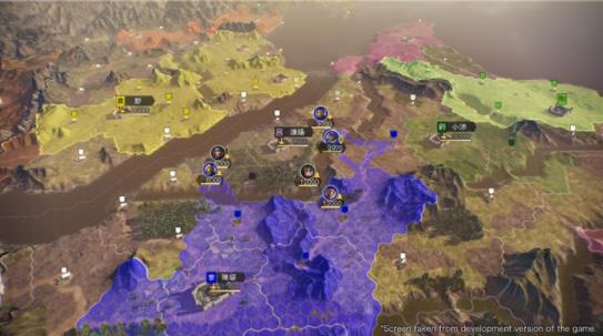 本作将广大的中华大地以整张写实的地图进行表现,精美的CG表现出各地截然不同的地理地貌。宏大的地图上分布46个都市与约340个地区。细分化的土地组成地区,在本作中将土地的争夺用涂色进行了直观的表现。每个势力都可设定决定势力方向的行政组织“施政”。“施政”以组织图呈现,通过配置武将可获得其独自的效果。出征中的部队若能与出征地之间有自势力支配的土地连结,就能维持拥有“兵站”(补给线)的状态。
