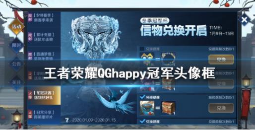 王者荣耀游戏QGhappy冠军头像框怎么获得