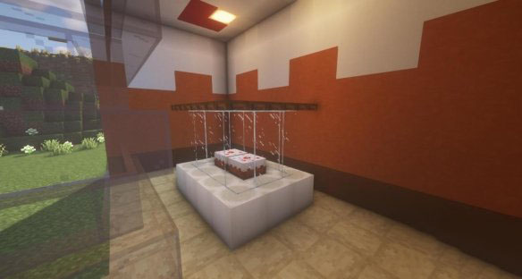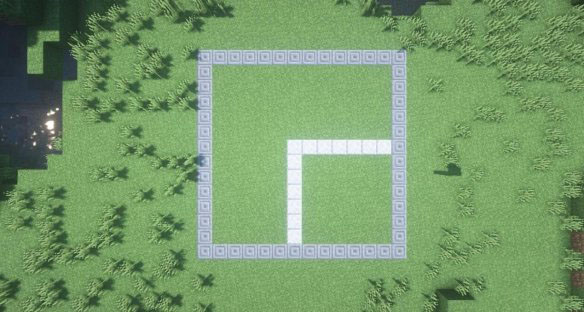 首先规划好蛋糕店的地形,大小为14*14,用磨制闪长岩标记的地方是要切割的部分。