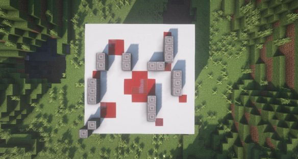 在如图位置先放3*4的骨块作为底座,然后在中间放两个蛋糕。