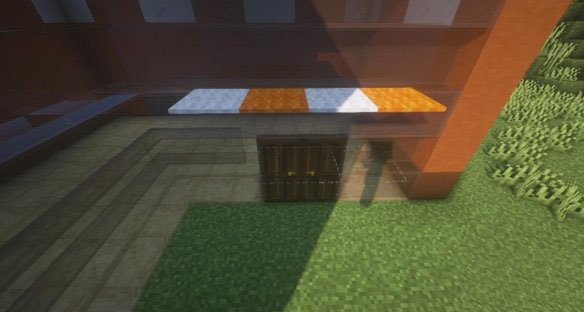 放四个棕色潜影盒作为收银台,用深色橡木栅栏和深色橡木栅栏门做进出口。