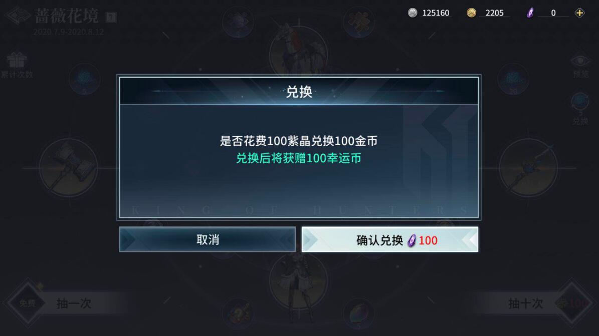 2、我们每天可以免费抽一次。或者消耗紫晶兑换金币获得幸运币抽奖。