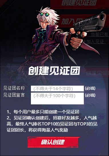 选择创建见证团,一起见证DNF手游上线时间!