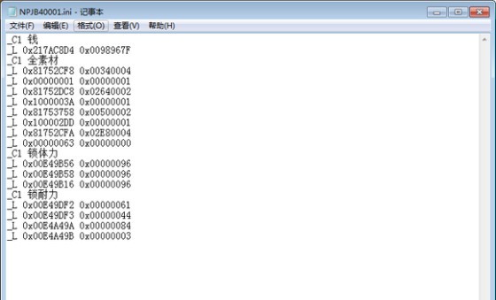 3、这时请记住模拟器顶部红框中游戏的id NPJB40001 然后可以暂停游戏一下(关闭游戏也可以) 进入模拟器文件夹中的memstickPSP cheats文件夹中 你可以发现一个和游戏id相同的ini文件如上图 可以用记事本打开进入编辑 在这里面可以输入金手指的作弊码。