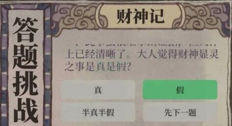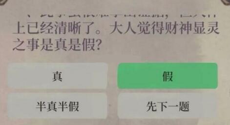 选项:真、假、半真半假、先下一题