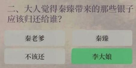 选项:秦老爹、秦臻、不该还、李大娘
