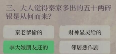 三、大人觉得秦家多出的五十两碎银是从何而来?