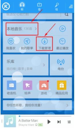 首先第一步。在【本地音乐】或【下载管理】找到已下载的歌曲,如图所示。