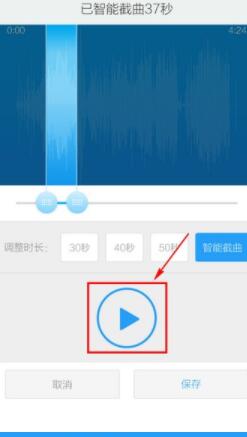 第五步。酷狗音乐app已智能剪切歌曲高潮部分,你可以自己调整,如图所示。