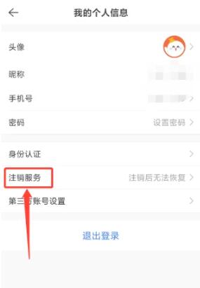 进入我的个人信息,点击【注销服务】。