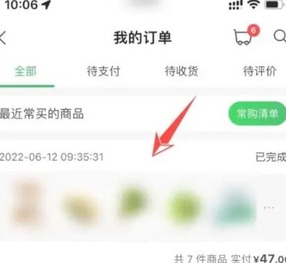 打开手机上的叮咚买菜app,在软件我的订单页面里选择要退款的订单。
