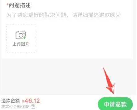 在退款的页面里填写退款原因问题后再点击申请退款。