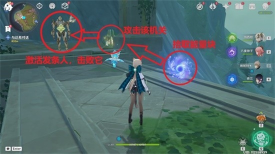 4、第三个位置,捡起来地上的能量块,接着激活怪物后将其击败可以获得一个。