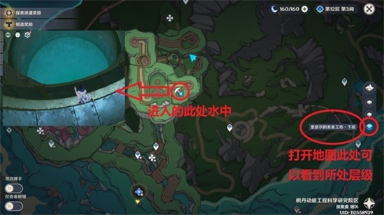 6、最后需要玩家进入山洞当中,同时坐电梯拉掉下面,跳入如图所示的水中可以获得一个。