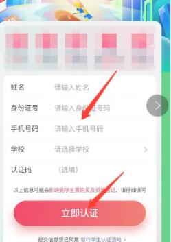 进入学生认证页面后,输入学生的学校信息以及身份信息,点击立即认证。