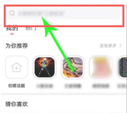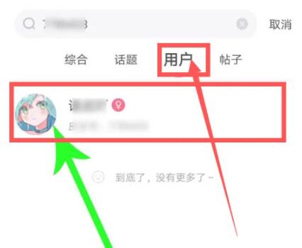 打开发现界面点击搜索框,搜索好友的皮皮号,点击搜索。