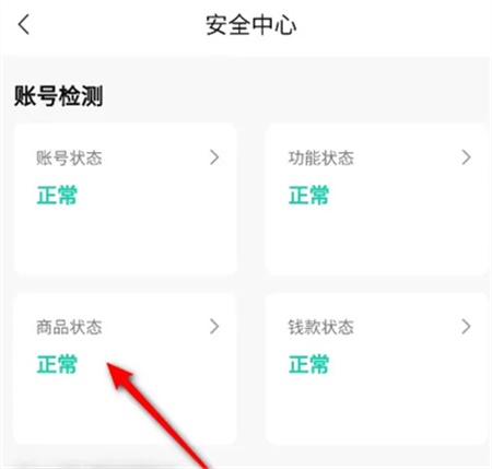 4.最后在安全中心页面“账号检测”下方的选项里有一个“商品状态”,在其中就可以查看到商品目前是什么状态了。