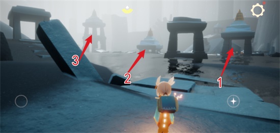 如果光翼不够,可以在这里找到有火的地方补充能量。我们的目标是最高的那座亭子,飞上去(也可以一步一步走上去),点亮中间的机关。