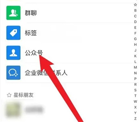 1.打开手机“微信”进入界面后,在底部点击“通讯录”这一项切换进入后,在其中找到“公众号”,在上面点击打开。