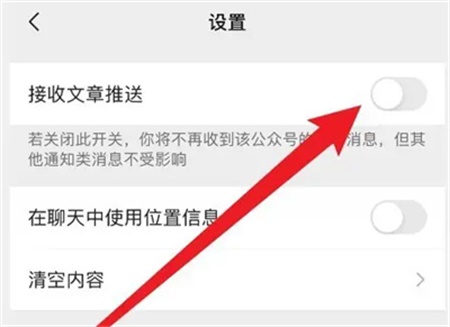 5.最后在设置页面内有一个“接收文章推送”,在它的后面显示有一个开关按钮,在上面点击把它设置为灰白色的关闭状态即可。