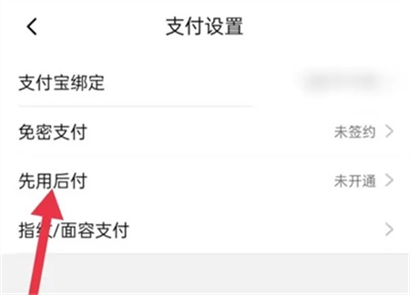 3.接下来在支付设置页面里找到“先用后付”功能,并在上面点击进入。